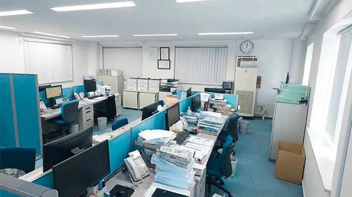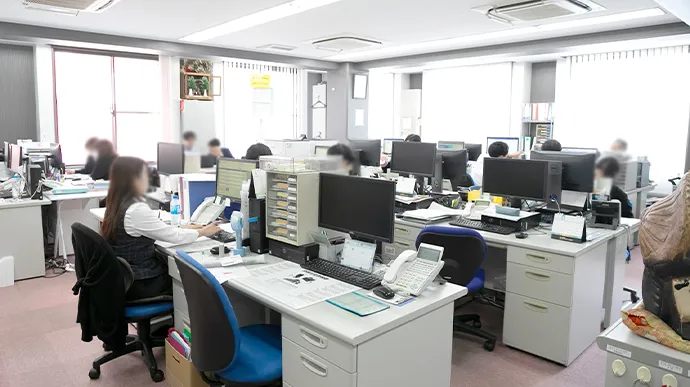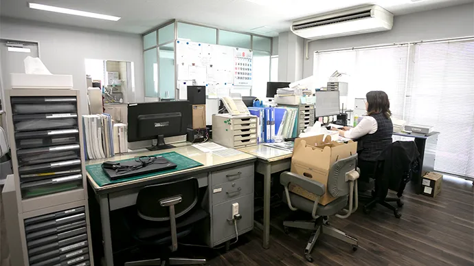 本社には営業部門と経理・総務部門が同居しており、営業と内勤スタッフが日常的に情報を共有しながらスピーディに対応しています。
